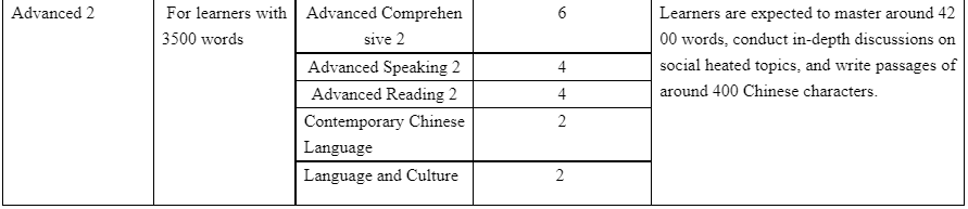 (1) Regular language courses: Comprehensive Chinese, Speaking, Listening, Listening and Speaking, Reading and Writing, etc.