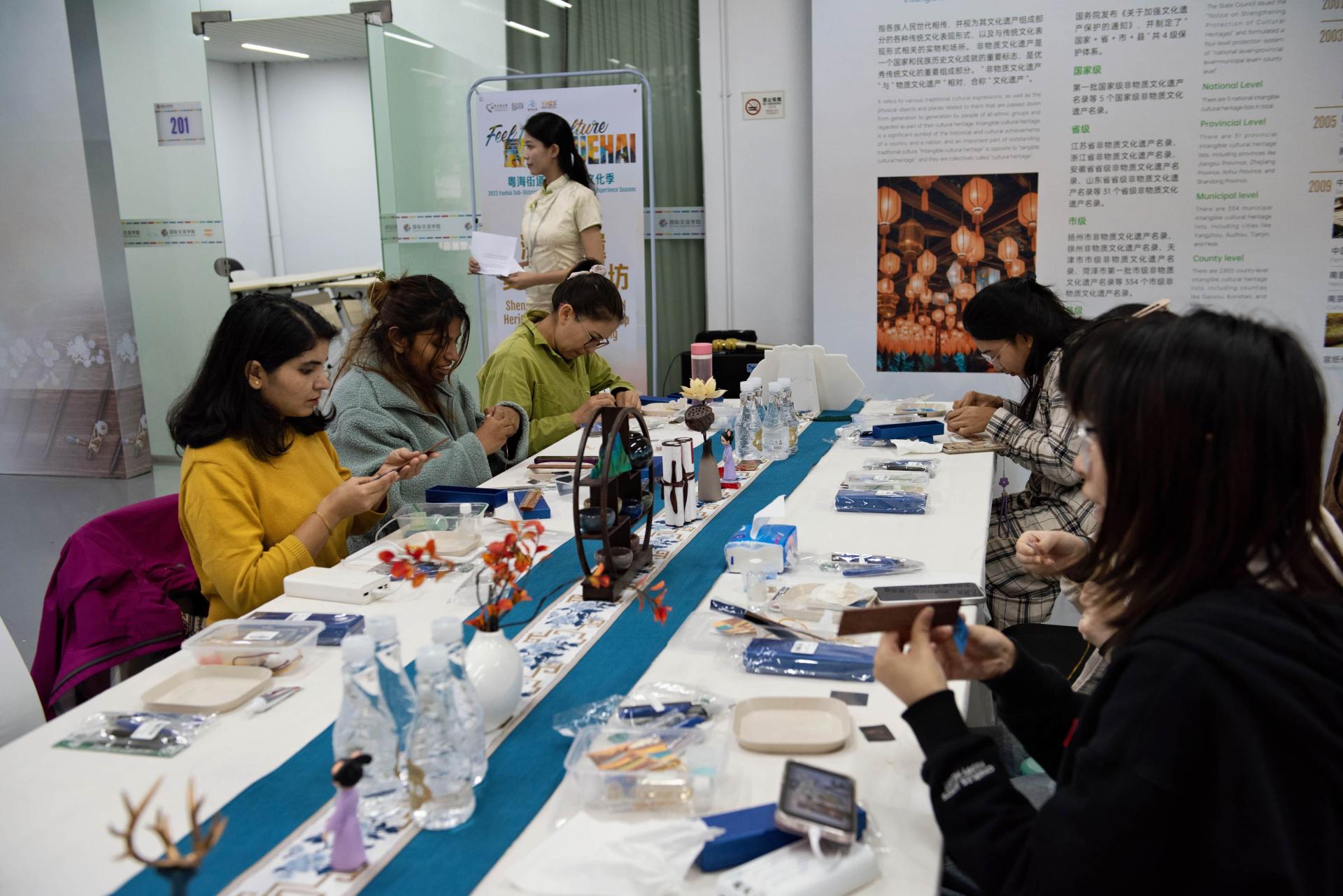 In the afternoon of November 16 and 17, 2023, International students of our school participated in the intangible cultural experience activity in Room 201 of Zhaoxi Building: Roadshow