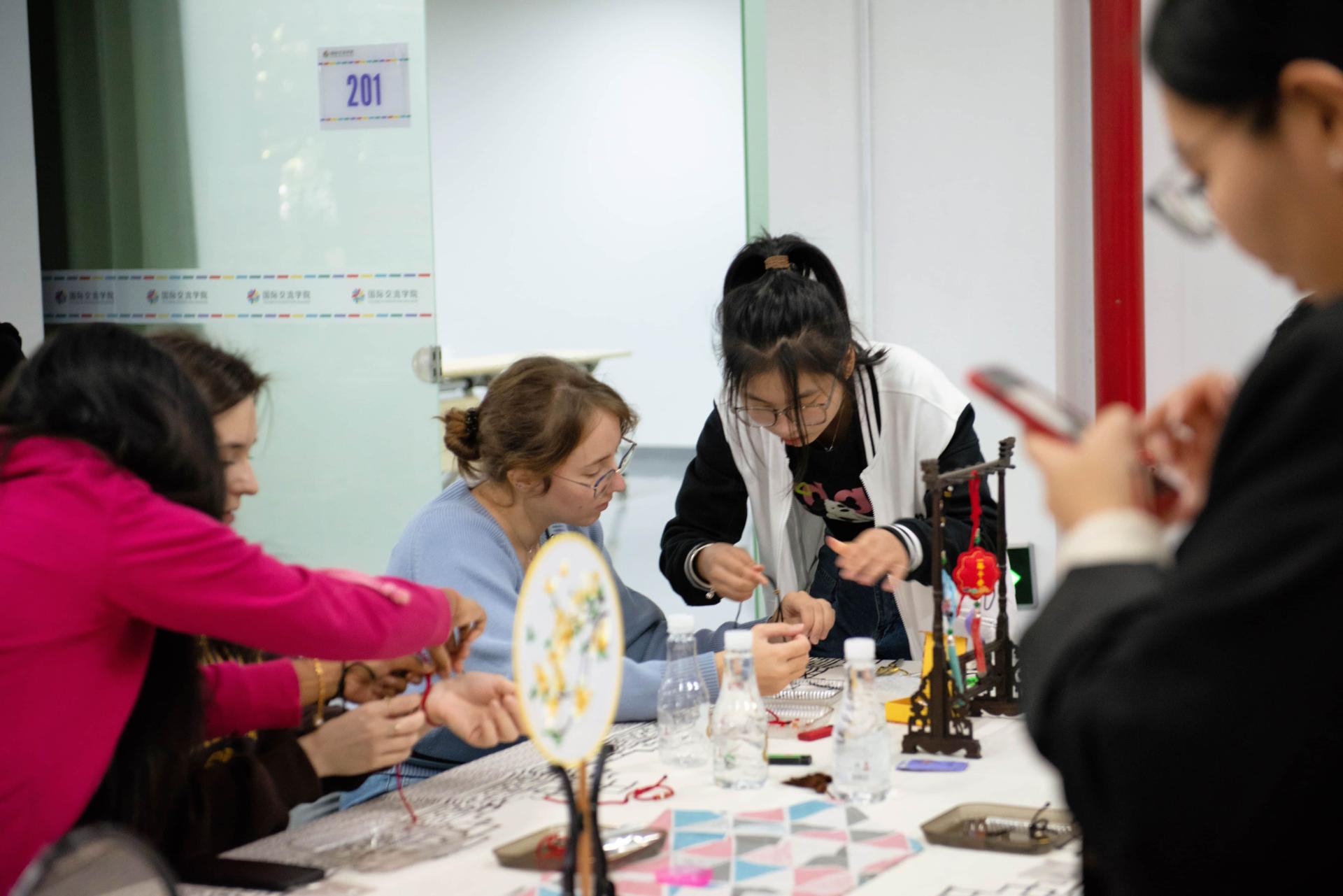 "Hand rope weaving must be patient, do not hurry, we must master the skills." The speaker who is responsible for the traditional rope knitting DIY hand string demonstrated the method of rope knitting, and the colorful rope turned and shuttled in the skillful hand. The international students looked on, memorized the steps and techniques, and started to make them themselves. As for the international students who do not understand the point, the lecturer will help them hand in hand. Everyone studied hard, communicated with each other, helped each other, and soon a series of unique bracelets were completed.