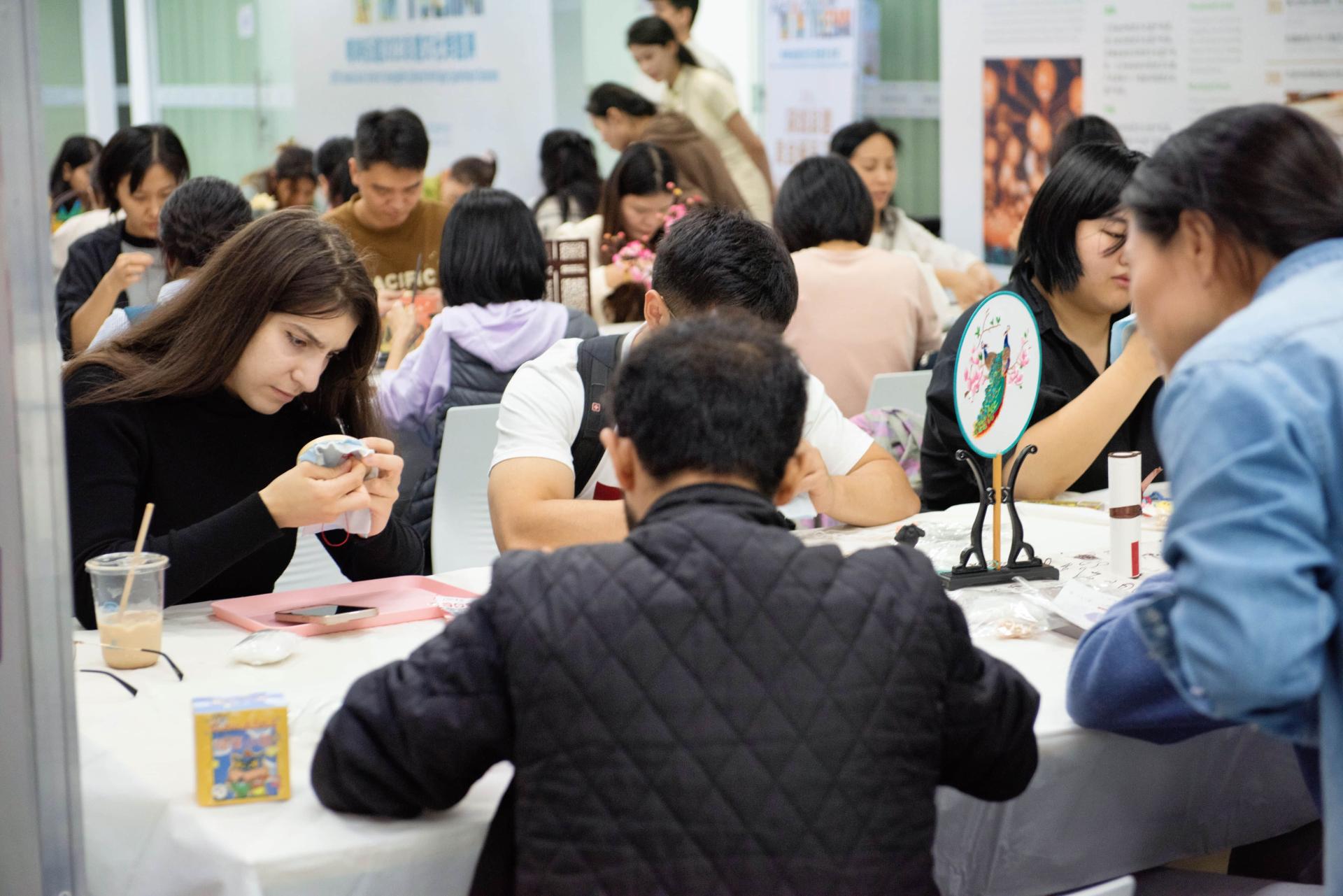 The roadshow activities include intangible cultural heritage hands-on experience, intangible cultural heritage market display, activity video exhibition and other wonderful activities. The intangible cultural Heritage roadshow showcased China's Peace and Joy embroidery hand-made purse, bamboo picture frame, rope woven traditional bracelet DIY, Cloisonne blue dragon Lin bookmark and ancient flower hairpins.