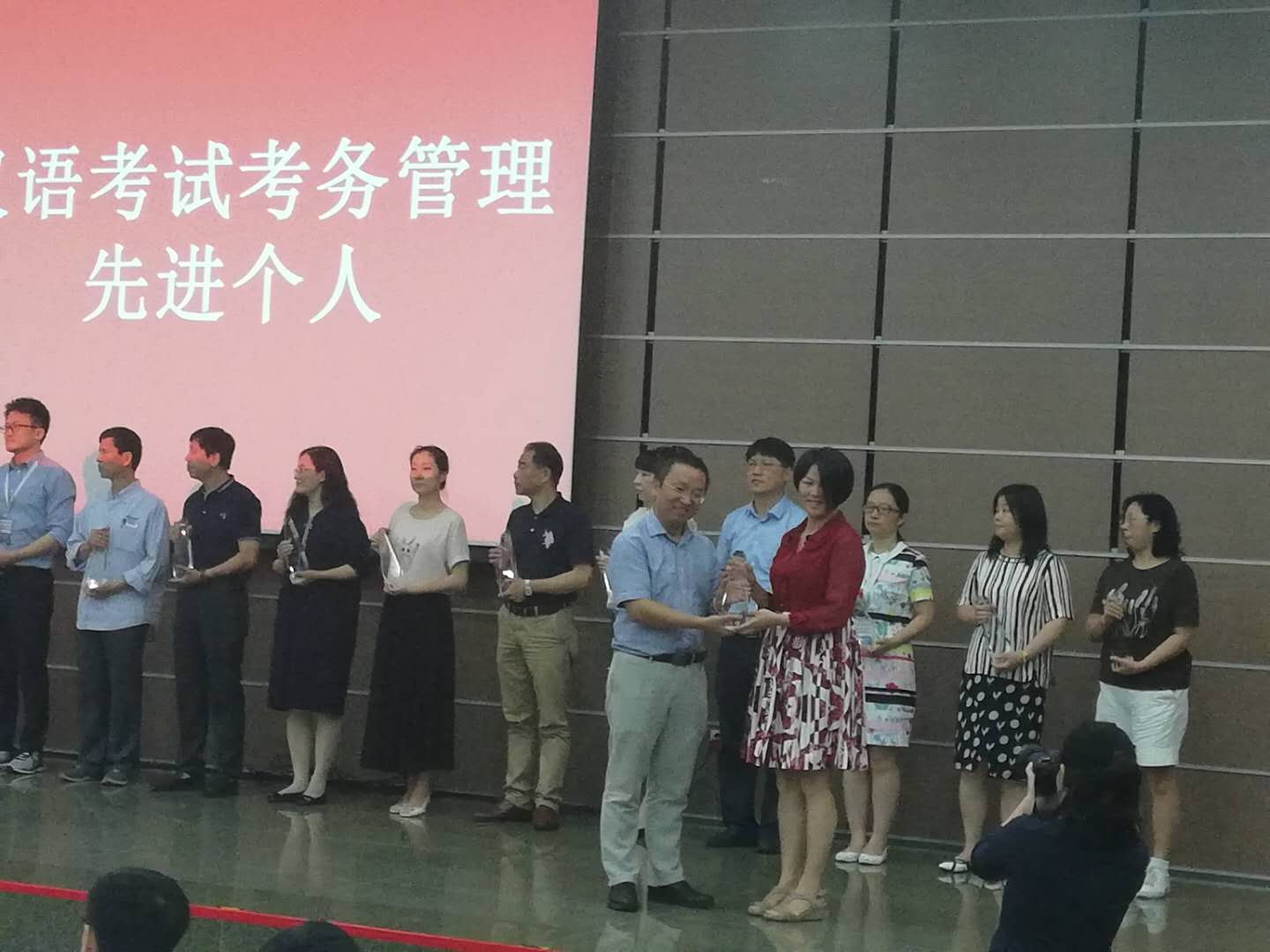 7月7月,2018年漢語考試全國考務工作會議于天津大學舉辦。會上,我校考點工作再次獲得高度認可,繼2013年和2016年我校獲得漢辦授予的國家優秀考點的稱號后,又添新榮譽。我院HSK考點負責人李峰玲老師喜獲全國漢語考試考務管理先進個人。