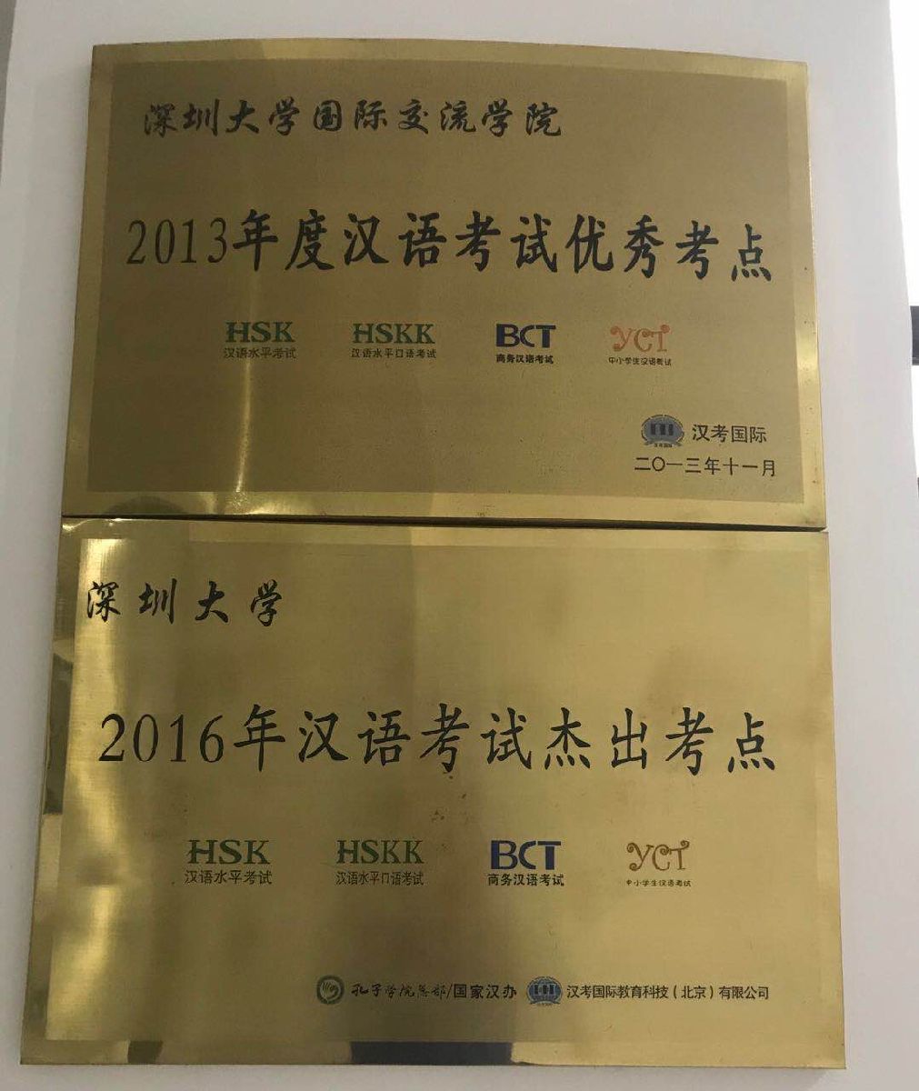 深圳大學分別于2013年和2016年獲得HSK國家漢語水平考試優秀考點