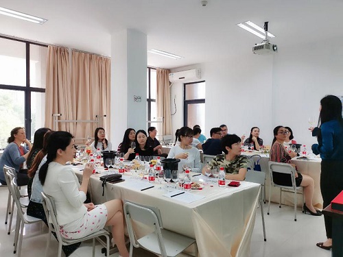 葡萄酒作為國際上通行的酒品,已成為必備的酒種,并成為通用的語言,擁有著國際沉淀的歷史文化背景。近年來,中國葡萄酒處在蓬勃發展的階段,努力實現與國際接軌。作為與國際化發展息息相關、與國際學生交流甚多的我院,學院教職工在葡萄酒文化上的了解也須趕超人前,確實從飲食文化上做到與外籍人員互相理解。此次葡萄酒品鑒課程正好給予了學院教職工一個學習的機會,增進對外方文化的了解,提升個人素養,加強工作修養。