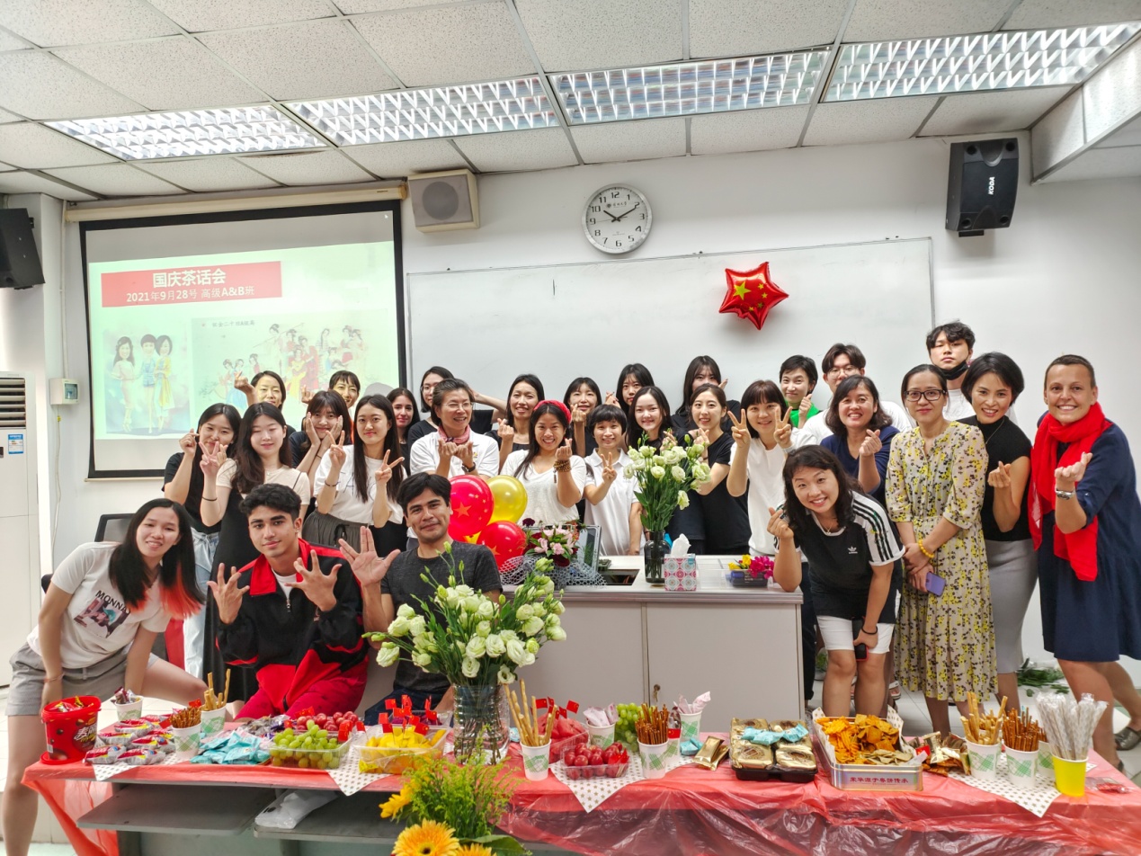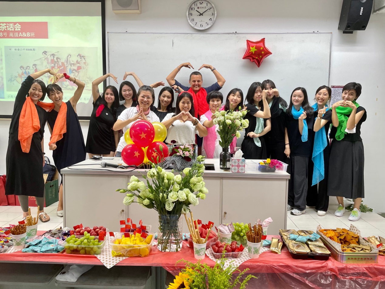 高級A班的同學們也跟著分享了各自學習、生活上的快樂。國慶節前話國慶,茶話會上見深情。本次茶話會,讓大家展現出了學習以外的一面,加深了同學們之間的感情,增強了班級的凝聚力。相信,高級A班的同學們在本學期以后的日子里,也會一起學習,共同努力,其樂融融,展現最美好的自己。