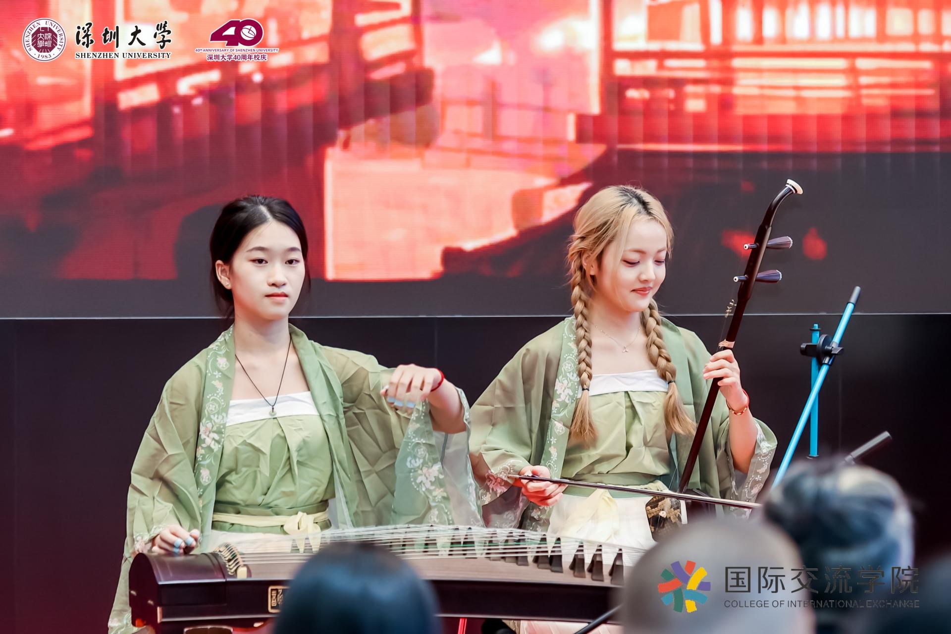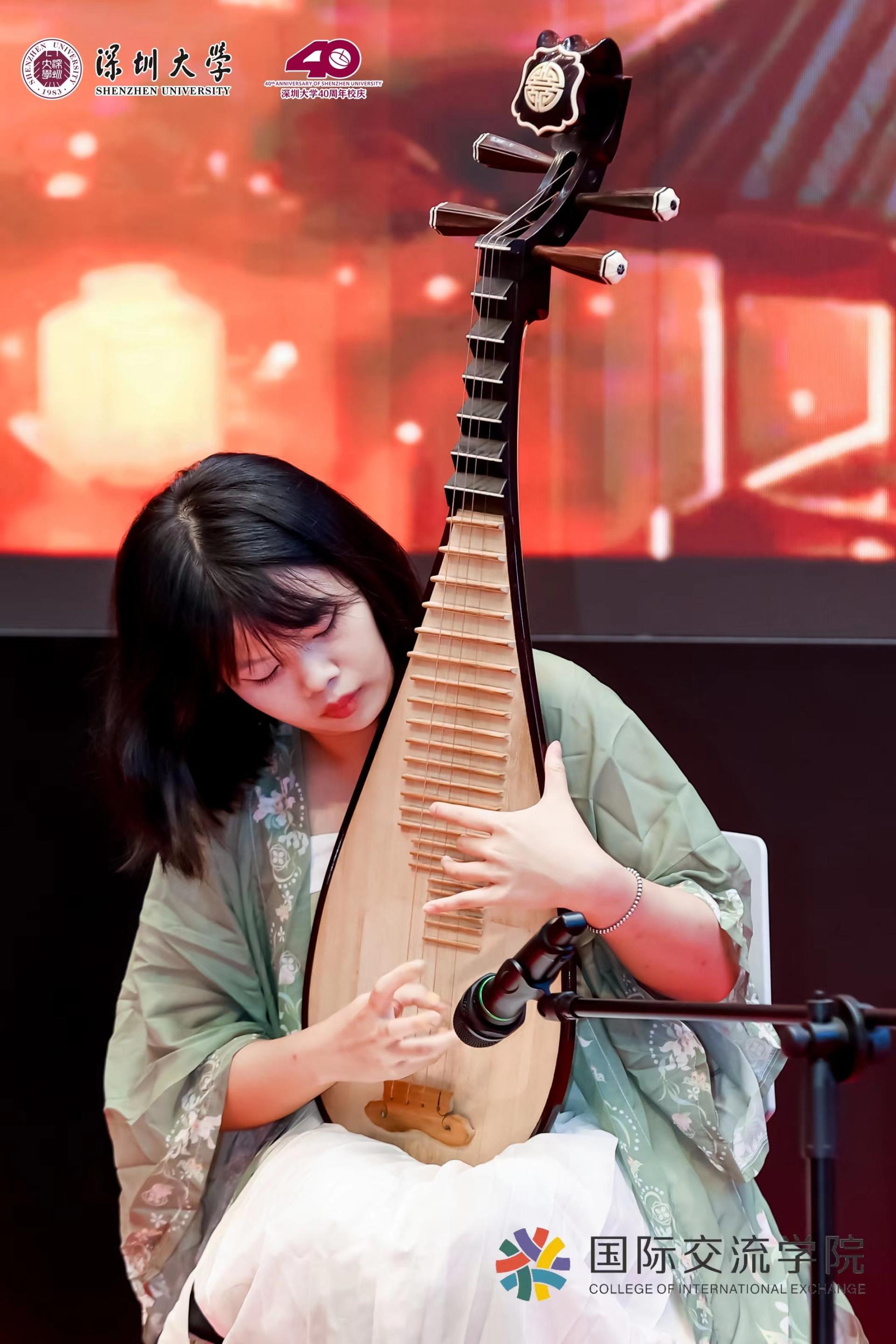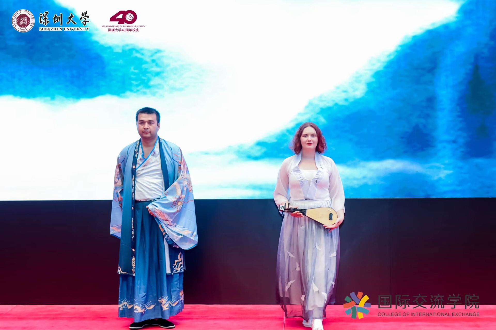 勁歌熱舞之后,來自摩洛哥的Sbai Imane(伊曼)用柔美的聲線將歌曲《Butterfly Fly Away》中溫暖的歌詞娓娓道來,配合吉他琴弦撥動,治愈人心。由GSC舞團帶來的舞蹈表演《畫卷》,將滿滿的中式元素融入到舞蹈之中,勾勒出一幅幅美麗的抒情畫卷。最后,深圳大學國際合唱團帶來獻禮深圳大學40周年校慶的合唱作品《南海之帆》,旋律優美、歌詞深情,表達了對母校的深沉熱愛和對未來的無限期許。