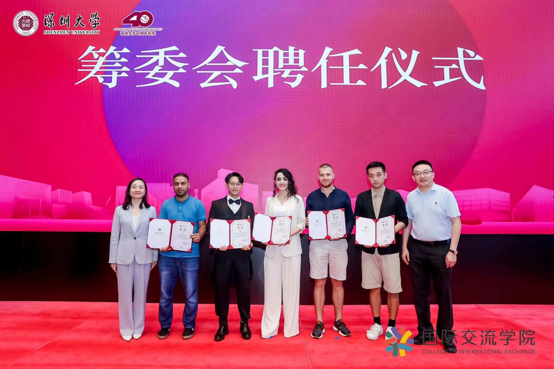 隨后,深圳大學副校長張學記、深圳大學國際合作部主任韓水仙、深圳大學國際交流學院院長潘燕春、深圳大學團委書記柯曉、深圳大學學生部副主任羅紹武、深圳大學國際交流學院副書記秦晴以及6名國際學生校友代表共同為深圳大學國際學生校友會揭牌。Saddam Aziz(沙頓)、Shin Moon-sub(申文燮)、Pooneh Dabiri(顏如玉)、Vitorovic Filip(百川)、Yang Hanson(霄漢)等5名國際學生校友獲聘校友會籌委會委員。