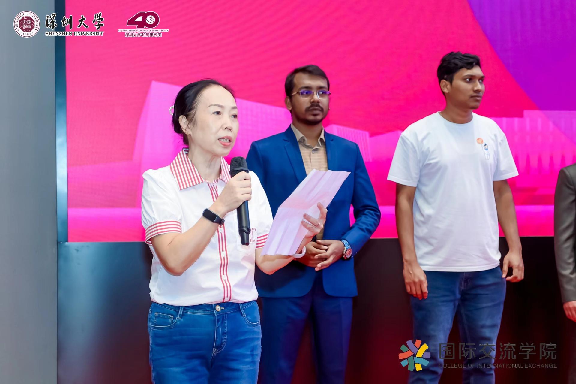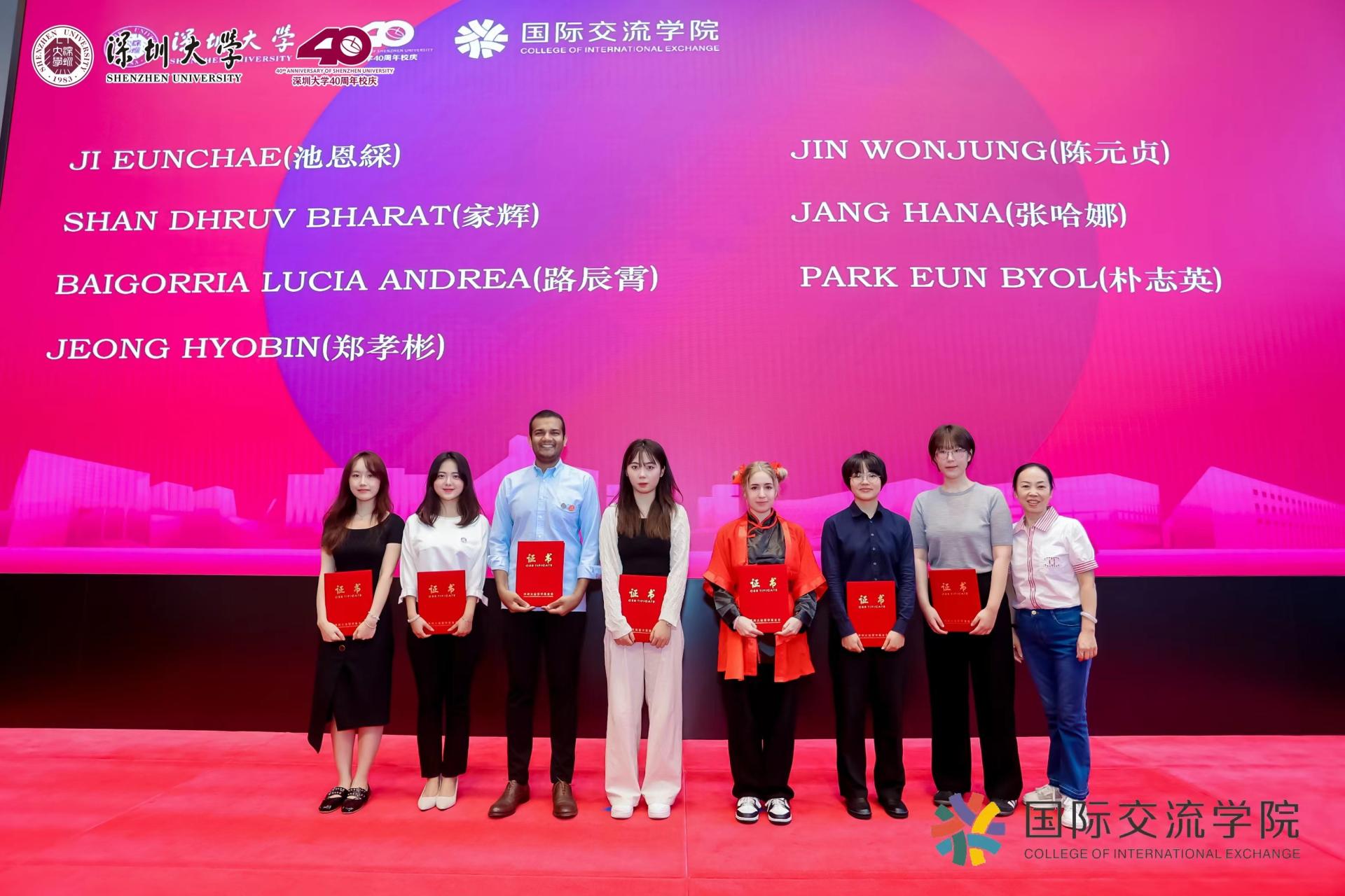 校友會揭牌儀式結束后,校慶晚會正式拉開帷幕。本次晚會特別設立深圳市大運留學基金會2023年資助學生證書頒發環節。今年,我校共有31名外籍留學生通過嚴格評審,憑借優異的成績獲得了各項大運獎學金的資助。深圳大運留學基金會副秘書長陸林現場為獲獎學生頒發獎學金證書,并寄語深大學子在新的征程中,繼續保持勤奮、求知的態度,勇敢地追逐自己的夢想,書寫更加精彩的人生篇章。