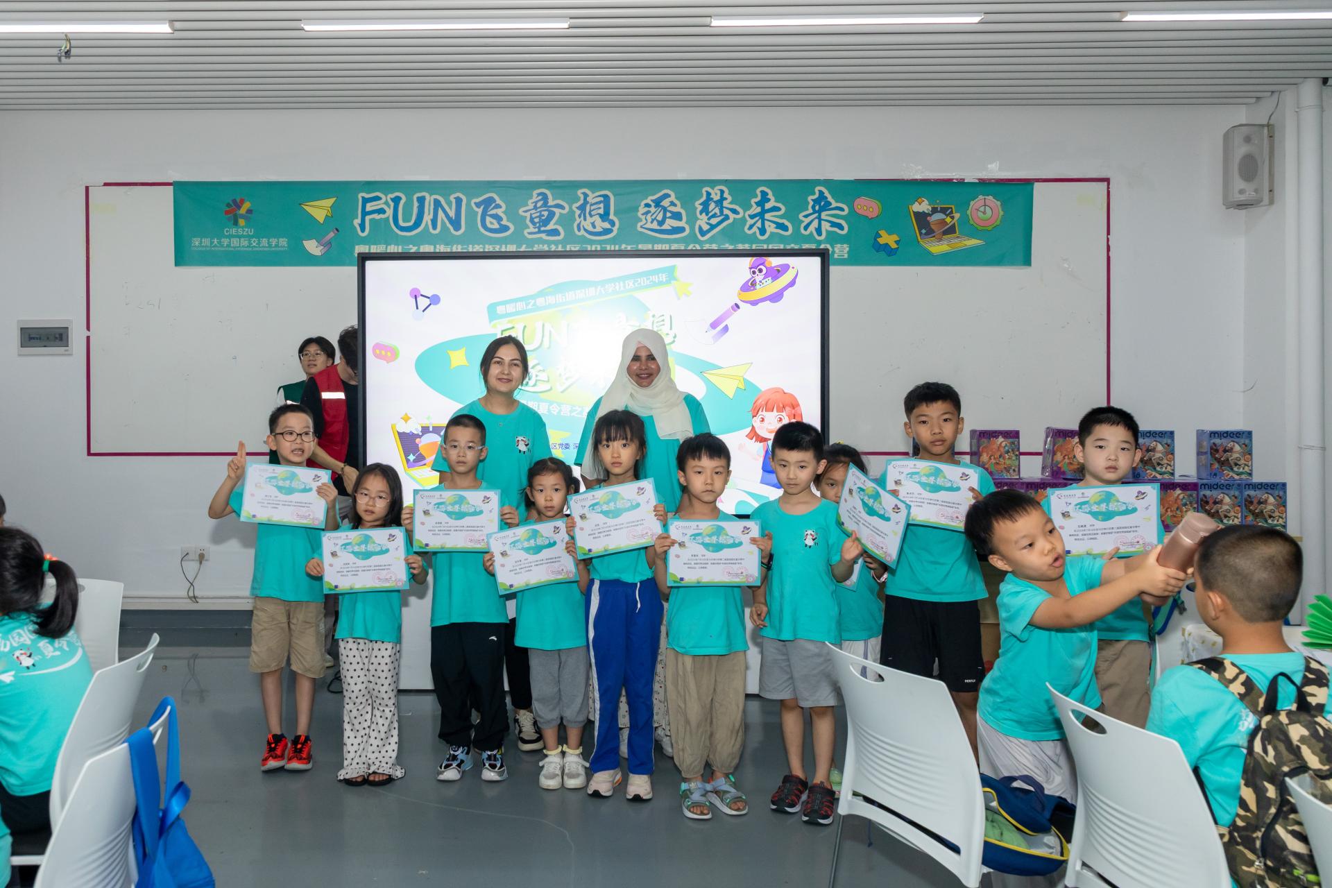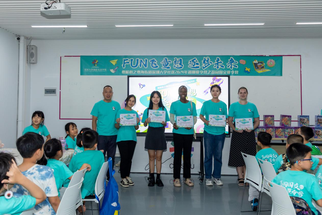 風雨兼程路,碩果滿枝頭;榮譽加冕時,情誼更深厚。深圳大學黨委社區黨委書記任毅、深圳大學國際交流學院副書記秦晴為參與夏令營的留學生授課教師隆重地頒發了榮譽證書,并攜手共同留下了這份彌足珍貴的合影。這一榮譽,既是對留學生們在教學領域卓越貢獻的認可與贊賞,更是對他們不懈追求文化交流、深化國際理解所展現出的精神風貌的高度贊譽。這一刻,它見證了留學生們辛勤付出的汗水與努力,也彰顯了學院對多元文化交流和國際理解事業的重視與支持,彰顯了學院的開放與包容精神。