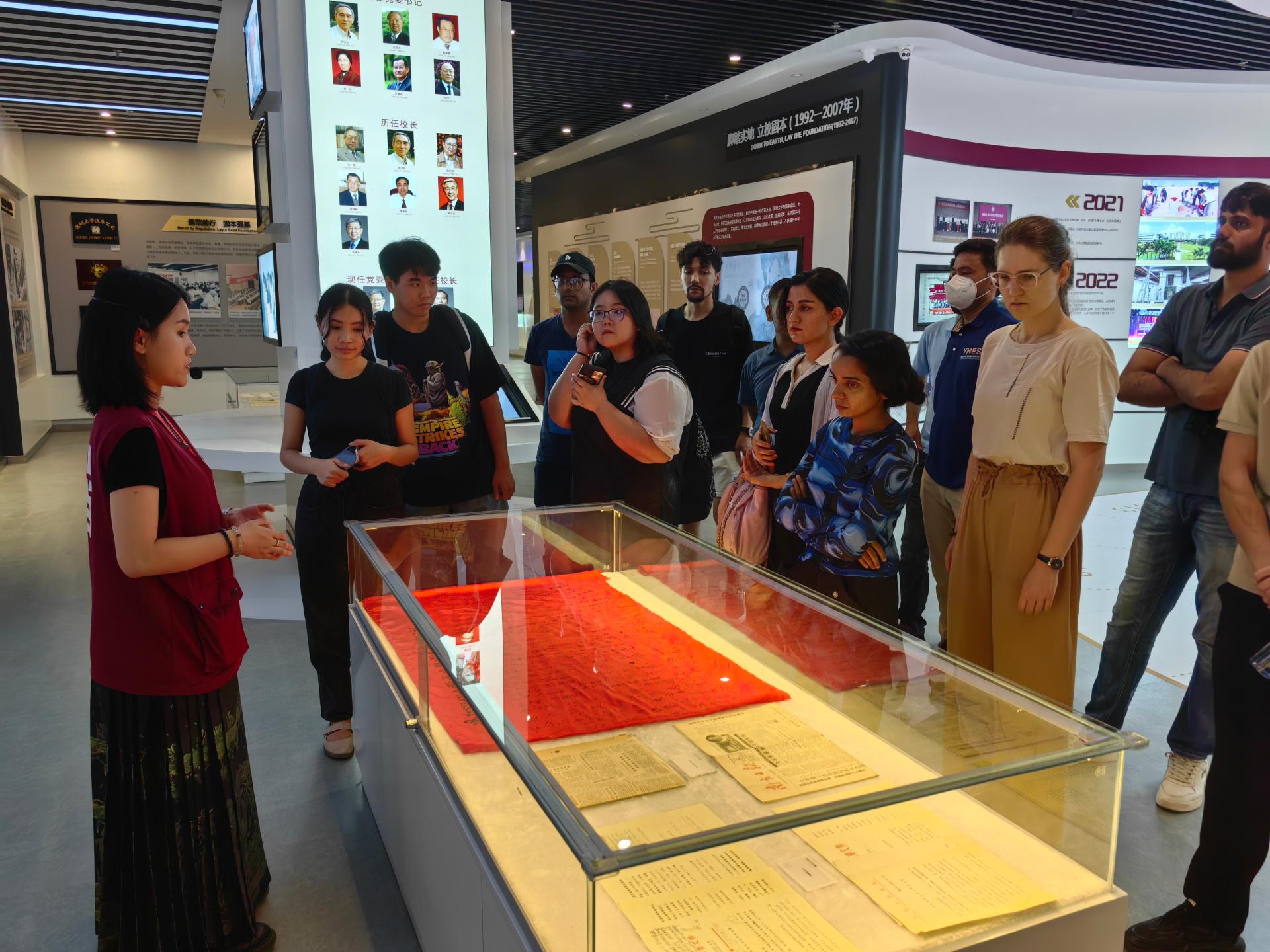 來自世界各地的國際新生在學院老師的帶領下,滿懷好奇與期待地踏上了前往校史館的旅程。深圳大學校史館,作為展示學校發展歷程、教育理念及成就的重要場所,不僅收藏了豐富的歷史文物和珍貴資料,更是學校文化傳承與創新的重要陣地。