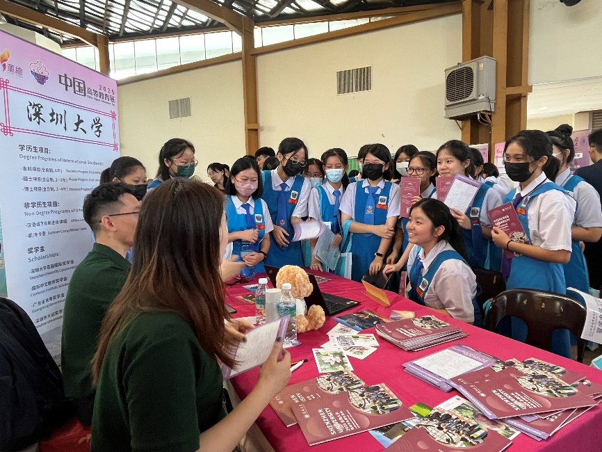 深圳大學(xué)國際交流學(xué)院招生專員曾文婷、夏填宇代表學(xué)校參展,針對有意來華留學(xué)的馬來西亞學(xué)生系統(tǒng)闡述我校的專業(yè)優(yōu)勢、校園環(huán)境、招生政策等內(nèi)容,耐心解答學(xué)生關(guān)心的話題,同時也向咨詢的學(xué)生發(fā)出了熱情邀請。我校展區(qū)咨詢隊列綿延,互動問答間洋溢著活躍融洽的氣氛。