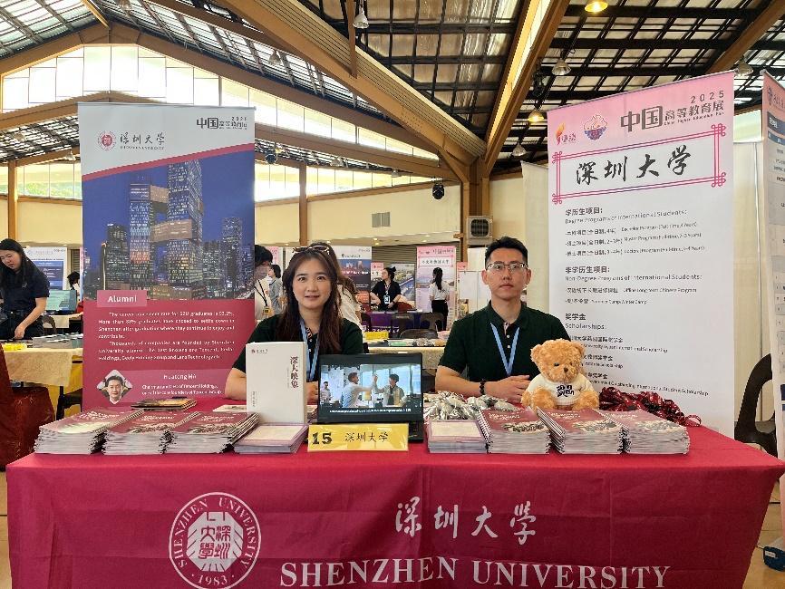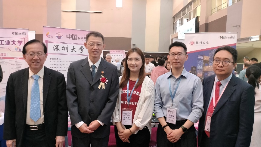 展會期間,中國駐馬來西亞大使館教育參贊趙長濤參觀深圳大學(xué)展位,就深圳大學(xué)基本概況、來華留學(xué)項目詳情等內(nèi)容與深圳大學(xué)代表團(tuán)親切交談,并合影留念。
