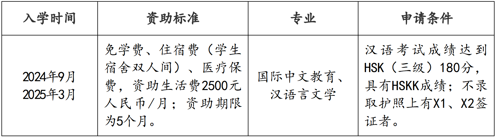 2.申請者只能申請一種由中國政府機(jī)構(gòu)提供的獎學(xué)金,重復(fù)申請視為無效,一經(jīng)查實(shí)將取消獎學(xué)金資格。