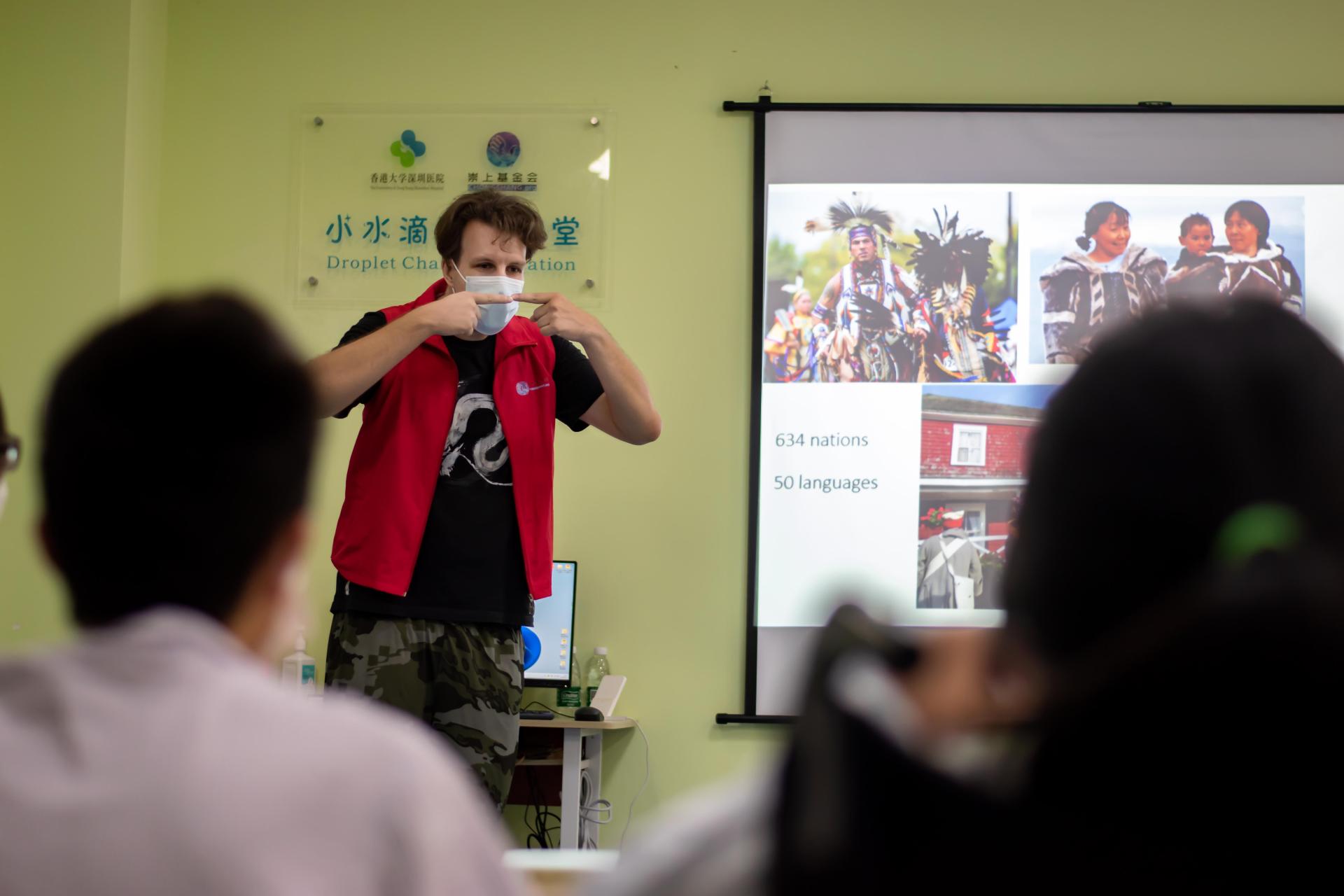 加拿大本科生DaveBouillon于5月10日為孩子們介紹了“楓葉之國”——加拿大。